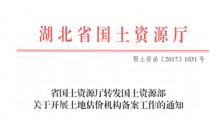 各市(州)、直管市、神农架林区国土资源局、湖北省土地估价与登记代理协会、土地估价机构: