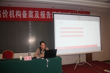 随后,省协会评审专家邱斐受专家委员会的委托,就2017年湖北省评估机构抽检情况、土地估价报告系统评审流程介绍、土地估价报告评审重点关注问题、土地报告备案系统操作注意事项等四个方面的问题进行了讲解,特别针对本年度报告评审中发现的共性问题进行了说明,并就相关问题的解决和如何做好土地估价报告、如何规范的上传土地估价报告进行了经验分享。