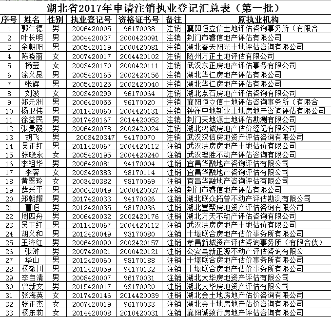 估价师信息已在相关网站作注销处理,若有疑问请电话咨询:俞蓉(027-87830535转601)