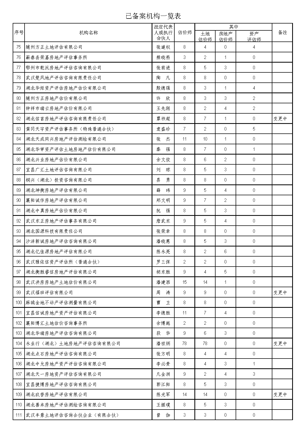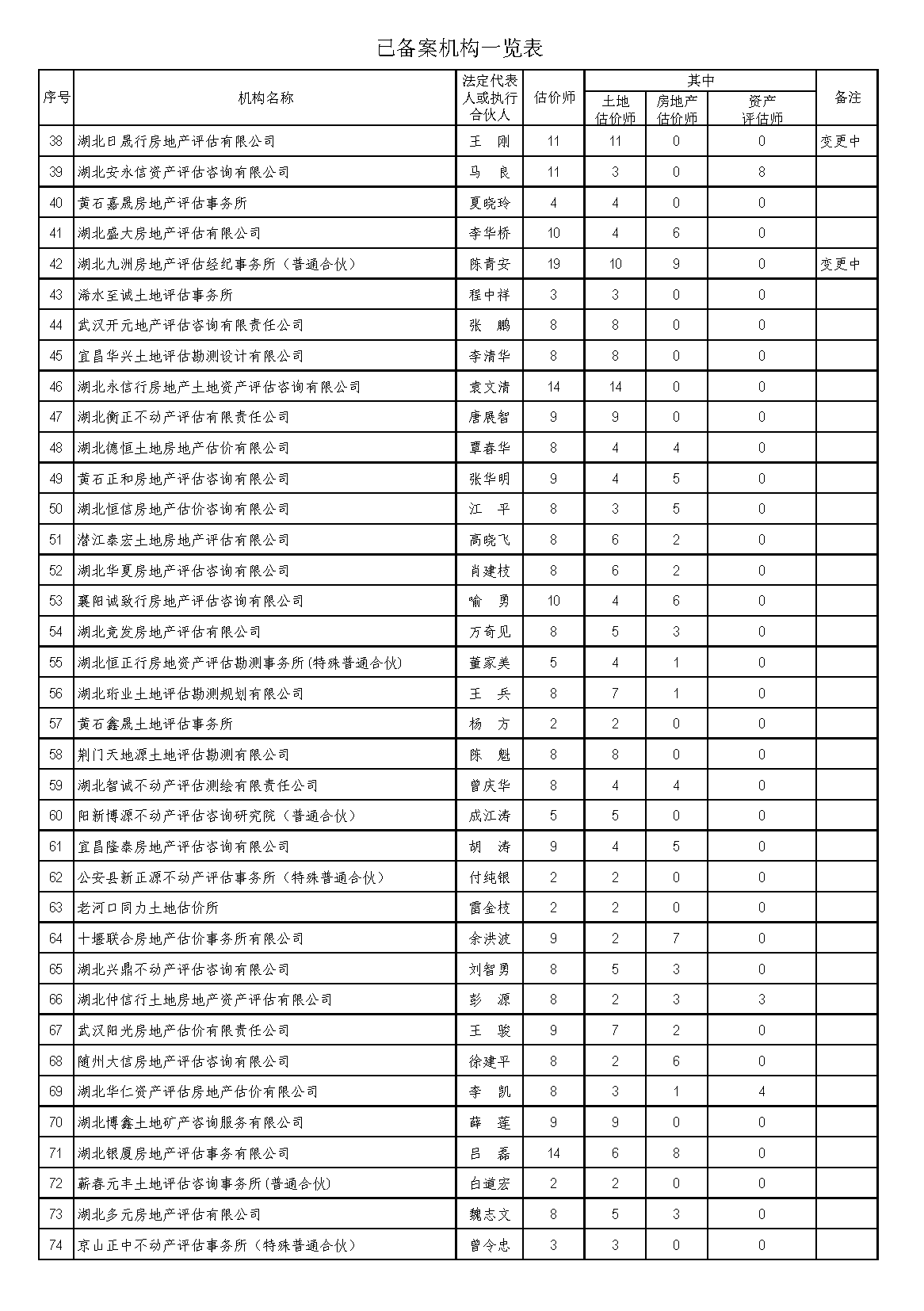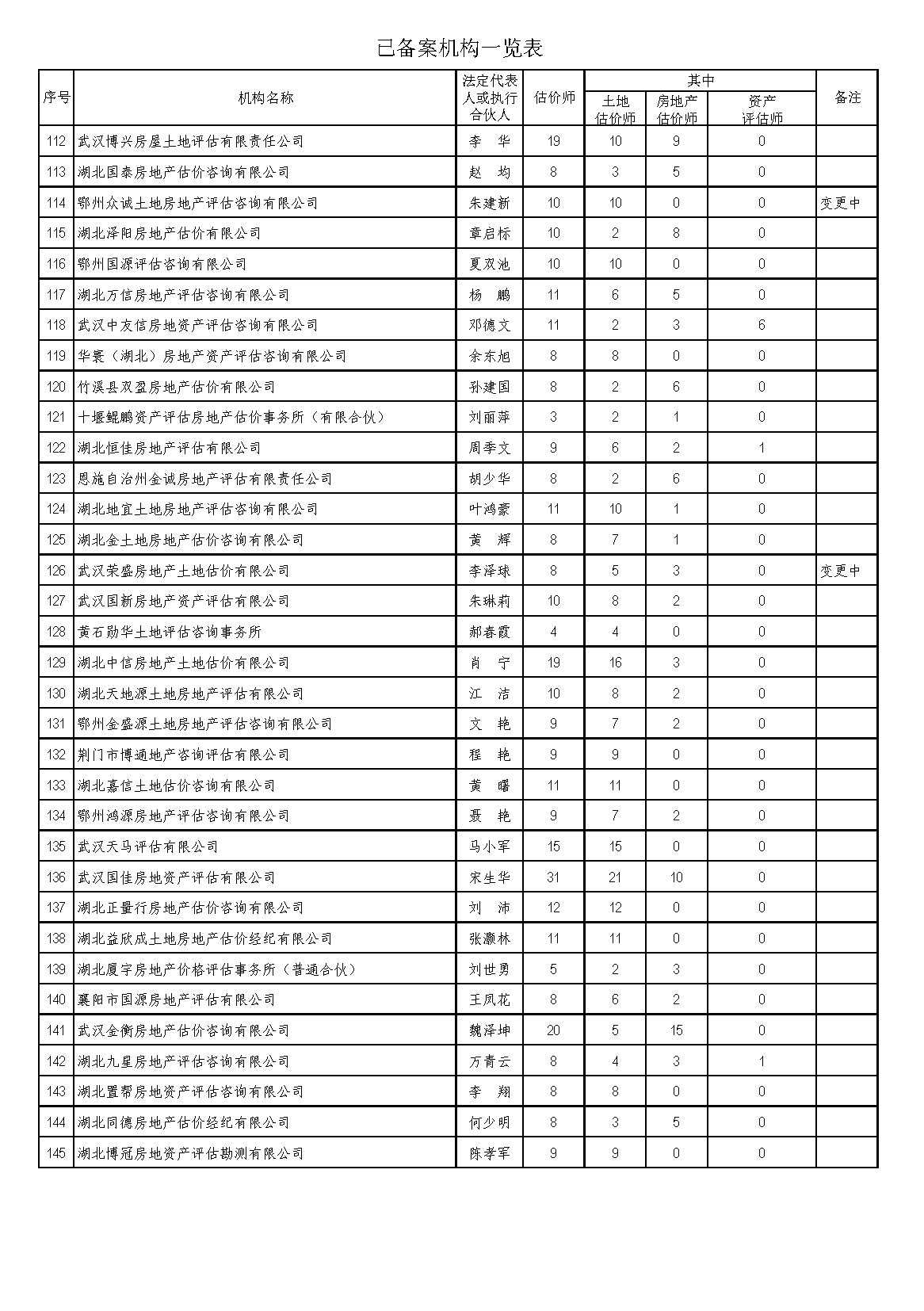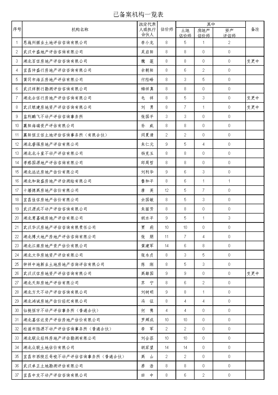 已备案机构变更信息后,省协会将依据土地估价机构备案系统,及时更新一览表内相关内容,以确保相关数据实时有效。