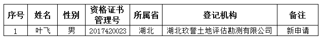 年4月土地登记代理人员初始登记公示