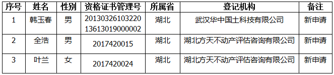 2018年5月土地登记代理人员初始登记公示