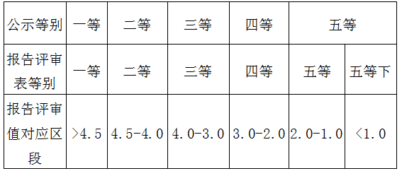 土地估价报告评审按照初审、复审和会审三级审查方式进行。土地估价报告初审由省协会专家委员会组织评审专家进行;土地估价报告复审和会审由省国土资源厅组织相关专家进行。评分体系按照等别计算,等别如下: