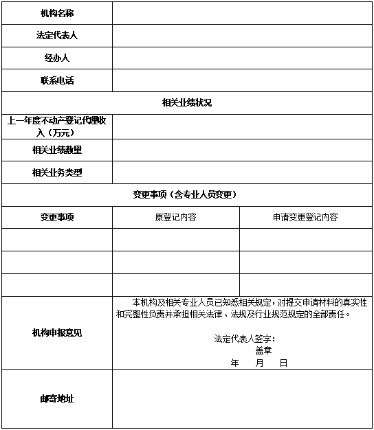 1.填写不动产登记代理会员机构信息变更核实表,并加盖单位公章;
