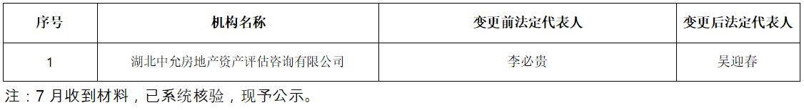 2020年7月不动产登记代理机构法定代表人变更登记公示