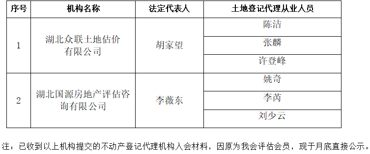 2021年度第一批土地(不动产)登记代理评估会员机构公示