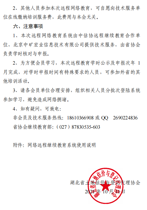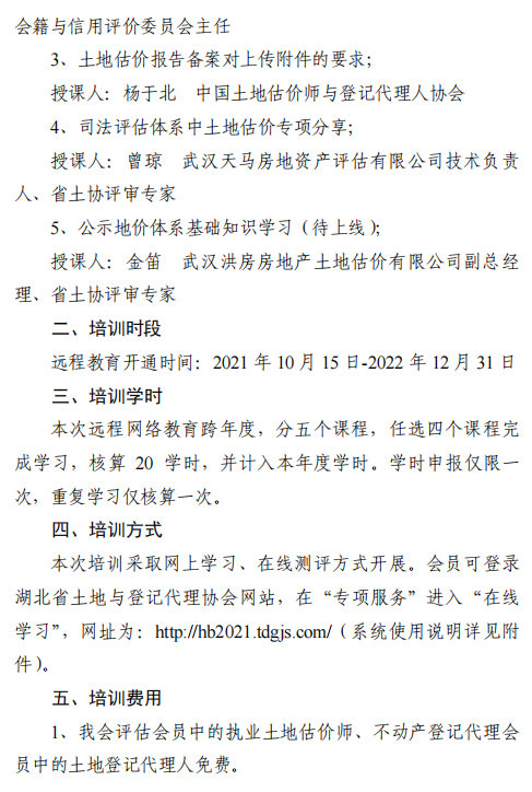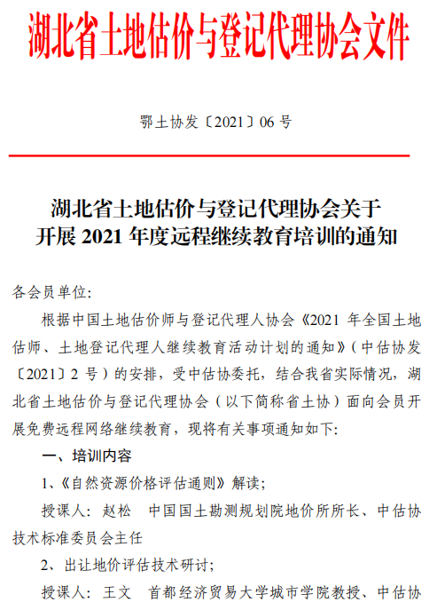 湖北省土地估价与登记代理协会关于开展2021年度远程继续教育培训的通知