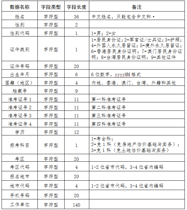 (一)房地产估价师考试数据库格式要求