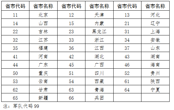 第二、三位采用省、自治区、直辖市的行政区代码(见“代码表”);