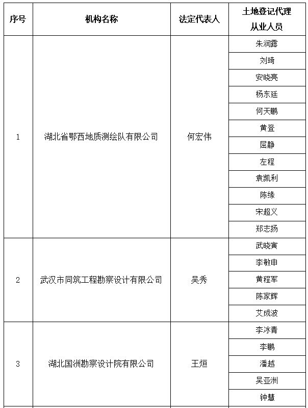 根据《湖北省土地估价与登记代理协会章程》和《湖北省土地(不动产)登记代理中介机构登记服务办法(暂行)》,经机构自愿申请,协会秘书处受理,会员会籍委员会审查,并经书面征求常务理事会同意,拟吸纳如下土地(不动产)登记代理机构入会,现公示如下,如有异议请于一周内联系省协会(027-87830535 邓少蓉)。