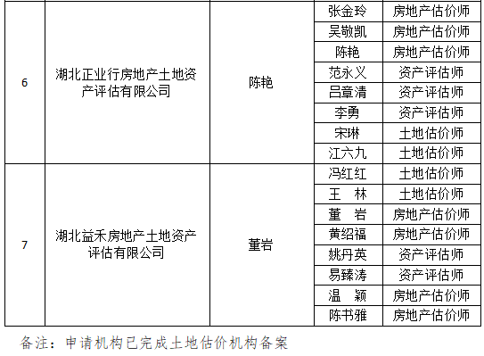 根据《湖北省土地估价与登记代理协会章程》,经机构自愿申请,协会秘书处初步审核,现对符合《资产评估法》和《湖北省土地估价师协会入会及会员会籍管理办法》条件,新备案7家土地估价机构情况汇报如下,提交常务理事审议: