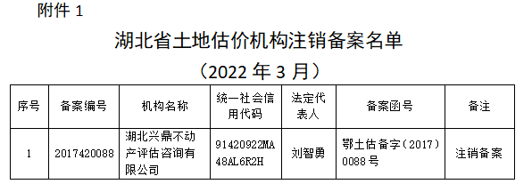 1.湖北省土地估价机构注销备案名单(2022年3月)