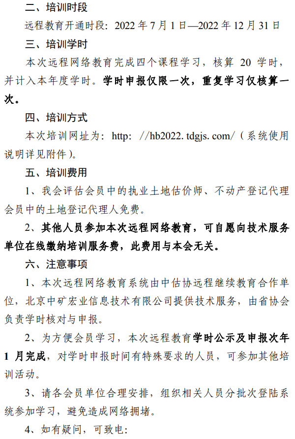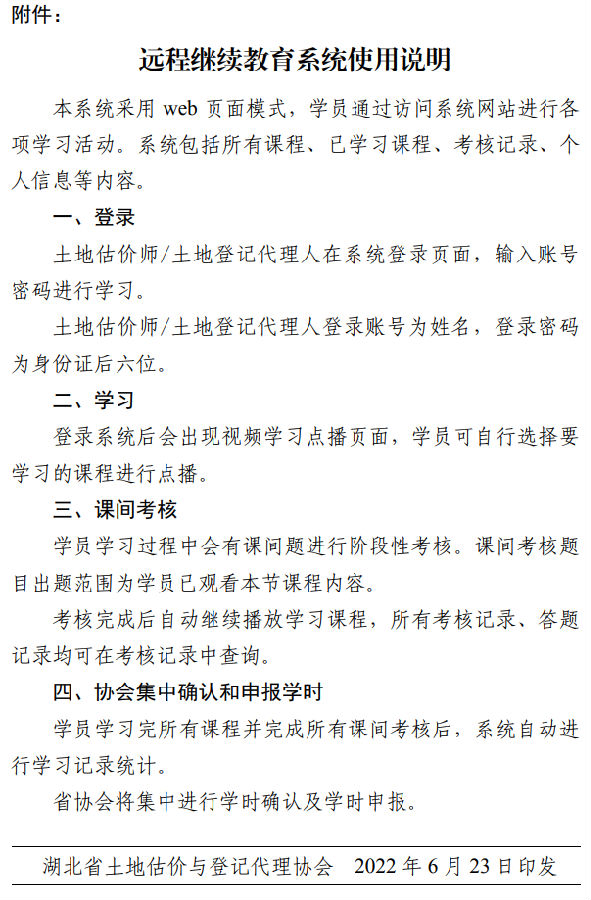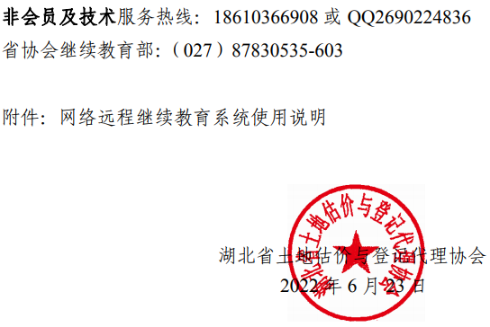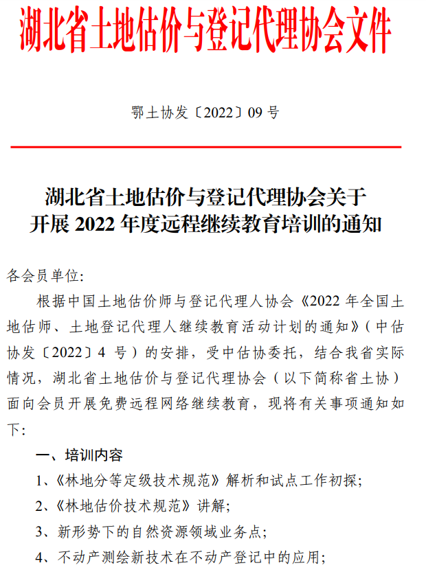 湖北省土地估价与登记代理协会关于开展2022年度远程继续教育培训的通知