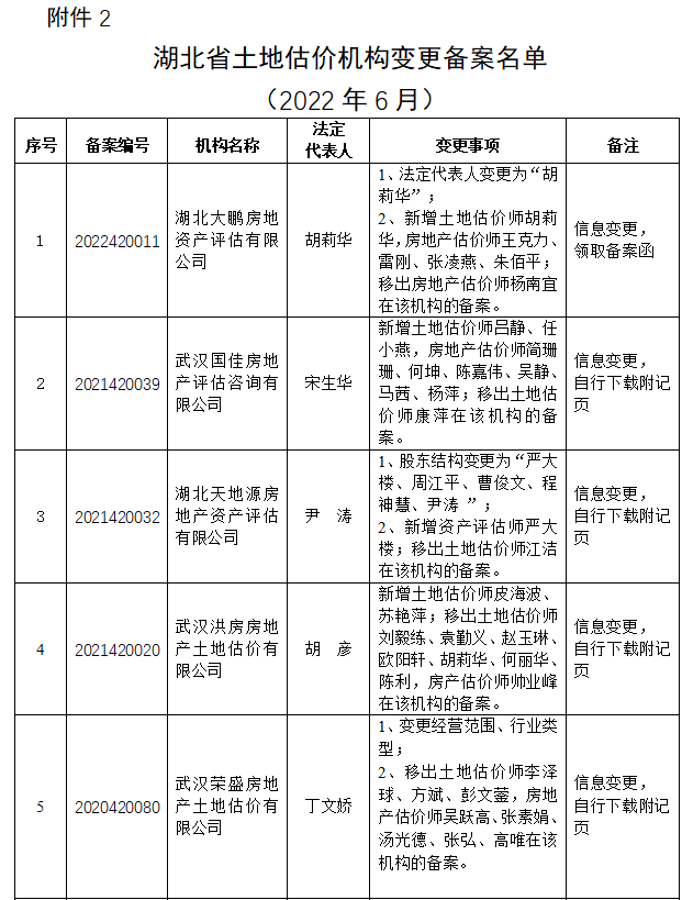 2.湖北省土地估价机构变更备案名单(2022年6月)