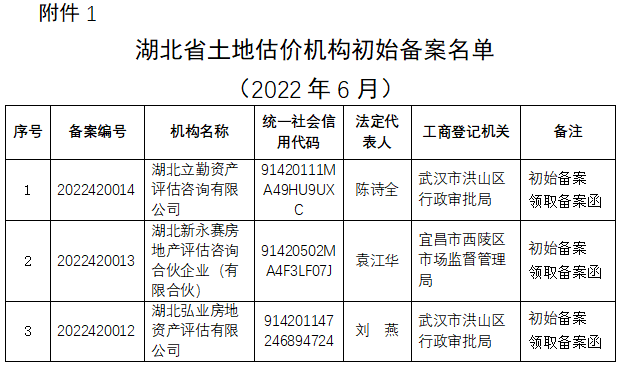 1.湖北省土地估价机构初始备案名单(2022年6月)