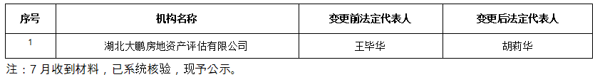 2022年7月不动产登记代理机构法定代表人变更登记公示