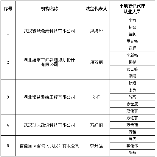 根据《湖北省土地估价与登记代理协会章程》和《湖北省土地(不动产)登记代理中介机构登记服务办法(暂行)》,经机构自愿申请,协会秘书处受理,会员会籍委员会审查,并经书面征求常务理事会同意,拟吸纳如下土地(不动产)登记代理机构入会,现公示如下,如有异议请于一周内联系省协会(027-87830535 邓少蓉)。